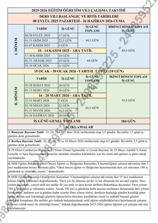 2025-2026 Eğitim Öğretim Yılı Çalışma Takvimi Yayınlandı.